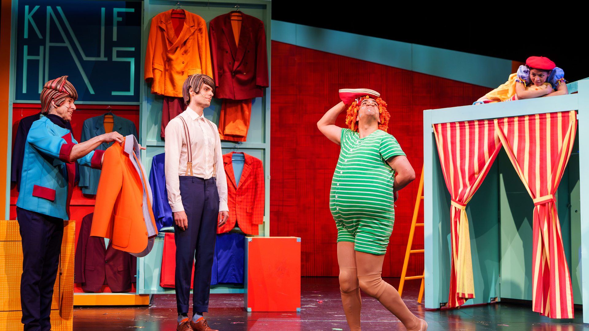 Stück: „Eine Woche voller Samstage“ von Pail Maar Theater: Theater für Niedersachsen Inszenierung: Melanie Schweinberger Bühne: Beata Kornatowska Kostüm: Beata Kornatowska Dramaturgie: Maren Simoneit Ensemble: Camila Cordero, Lene Jäger, Linda Riebau, Manuel Klein, Paul Hofmann, Tobias Herrmann Fotos: Clemens Heidrich Rolle: Sams